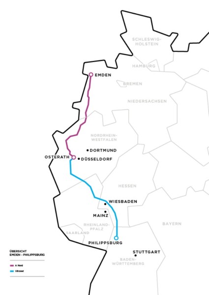 Mit der Konverterstation Petkum nimmt A-Nord 2.000 Megawatt Windstrom auf. Zusammen bilden die in Emden beginnende Gleichstromverbindung A-Nord und die in Osterath startende Gleichstromverbindung Ultranet den sogenannten Korridor A, der über 600 Kilometer von Nord nach Süd verläuft. Aus der reinen Punkt-zu-Punkt-Verbindung entsteht so eine Anlage zur Höchstspannungs-Gleichstrom-Übertragung (HGÜ) mit drei Netzverknüpfungen – in Niedersachsen, in Nordrhein-Westfalen und in Baden-Württemberg. Expert*innen nennen das ein „Multi-Terminal“-Netz. Es ist besonders flexibel und leistungsfähig: Es kann sowohl Windstrom aus dem Norden in den Süden transportieren als auch Sonnenstrom von Süden nach Westen und konventionell erzeugten Strom von Westen nach Süden.
