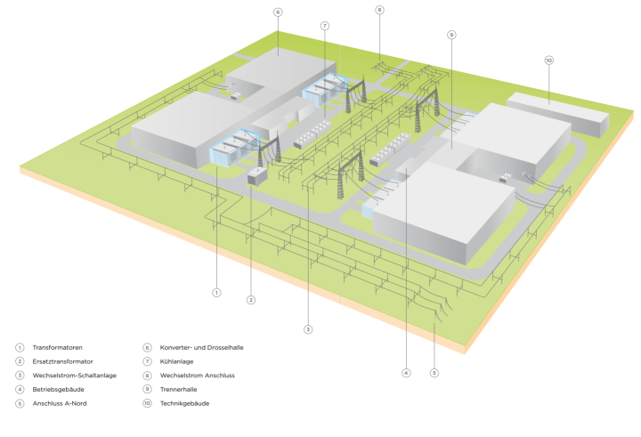Die Stromtrasse A-Nord ist als Erdkabel in Gleichstromtechnik geplant. Um den eingespeisten Wechselstrom für den Transport in Gleichstrom umzuwandeln und umgekehrt, werden an den Start- und Endpunkten der Trasse Konverter benötigt.